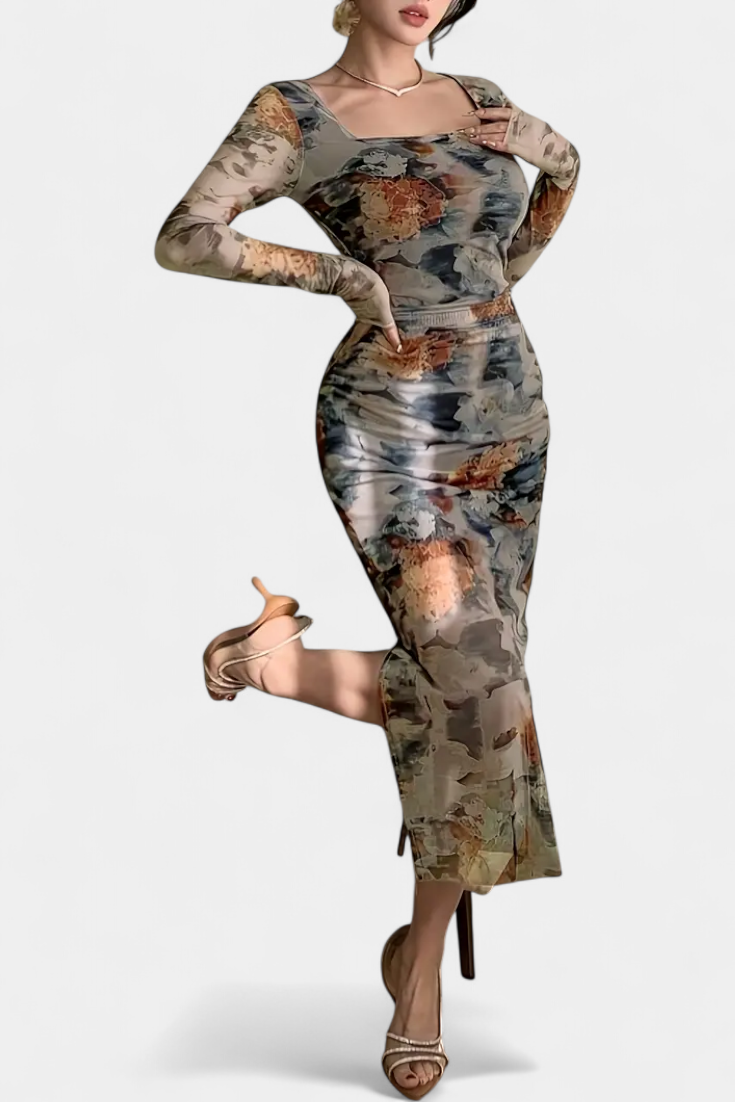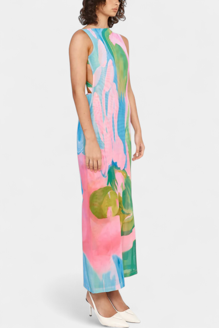 Lexa Robe Longue en Chiffon Imprimé Floral dos Nu