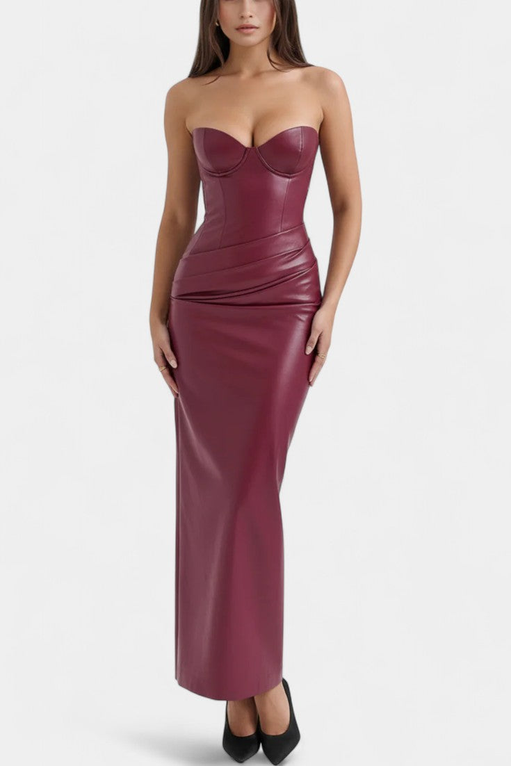 June Robe Longue Plissée Sans Bretelles à Décolleté Cœur