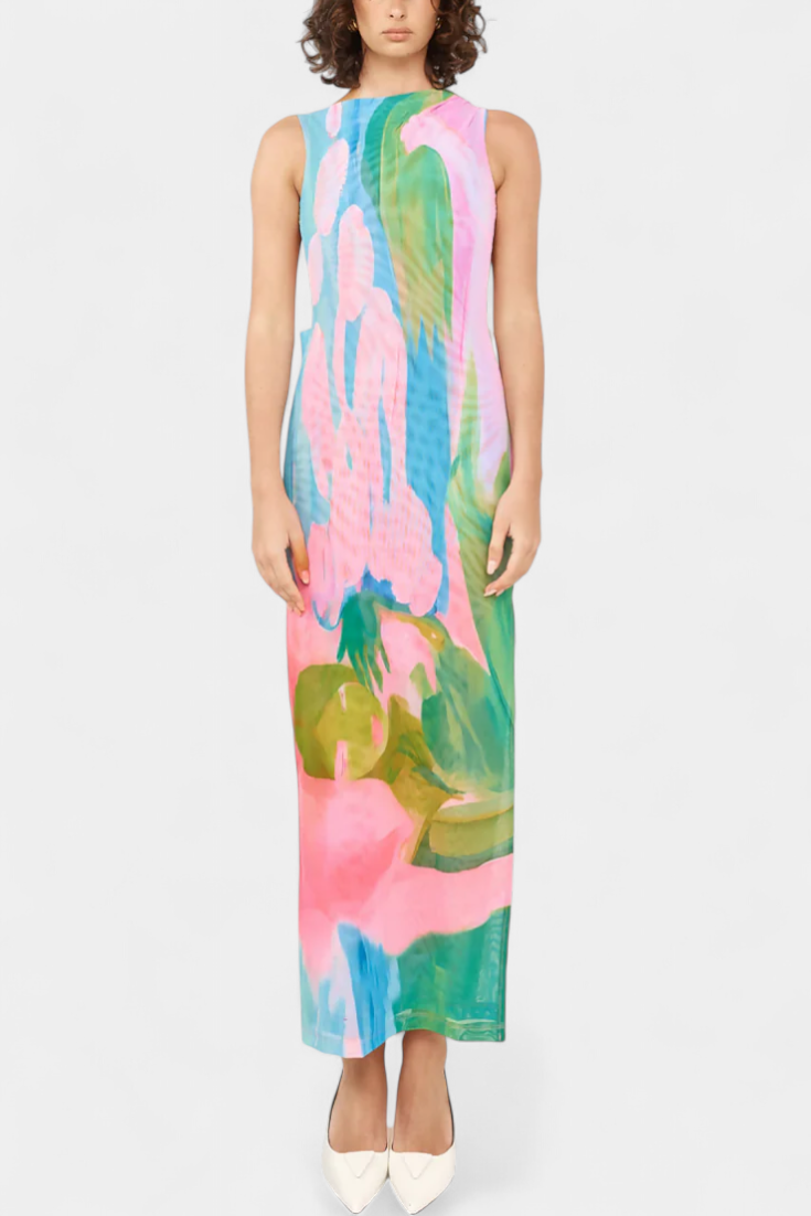 Marvelle Robe Midi Sans Manches en Tissu Fluide