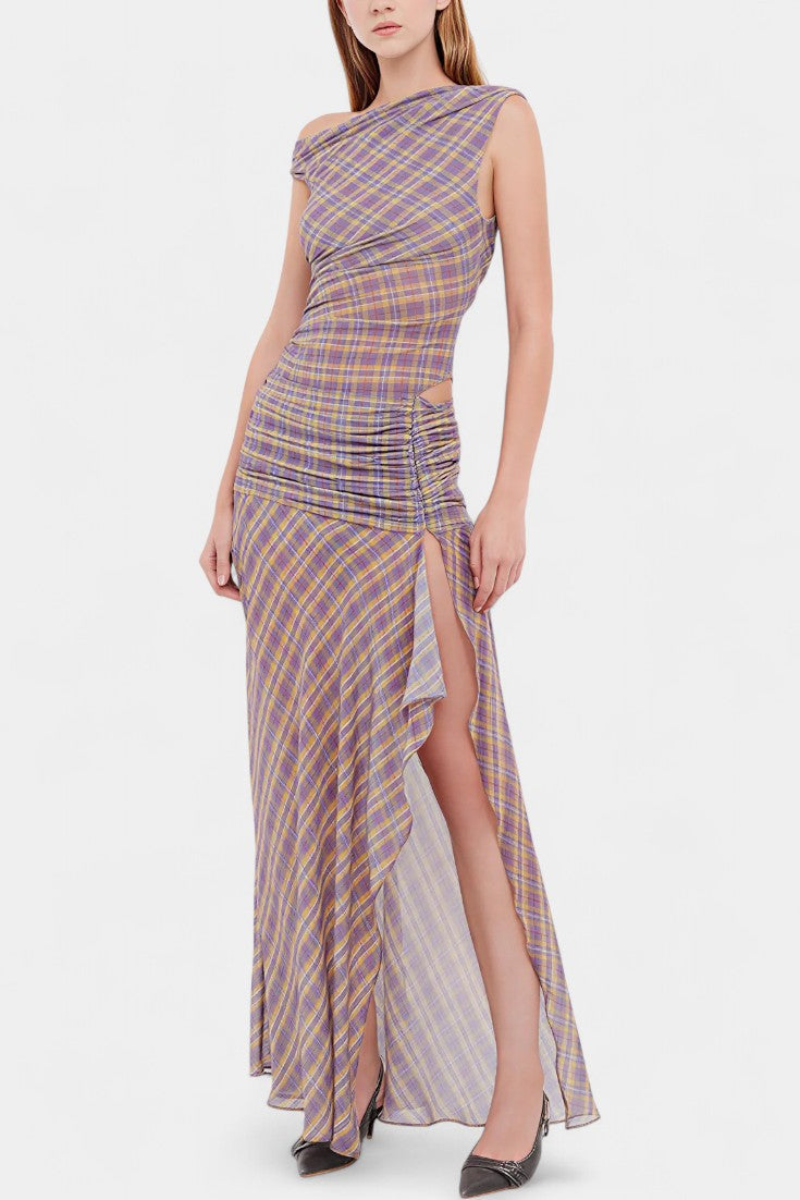 Maybelle Robe Longue Plissée à Une Épaule et Coupe Irrégulière