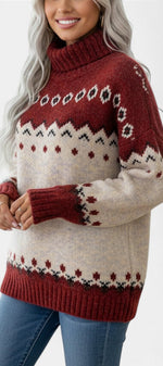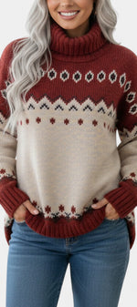 Gislaine Pull Col Roulé Jacquard Doux et Chaleureux