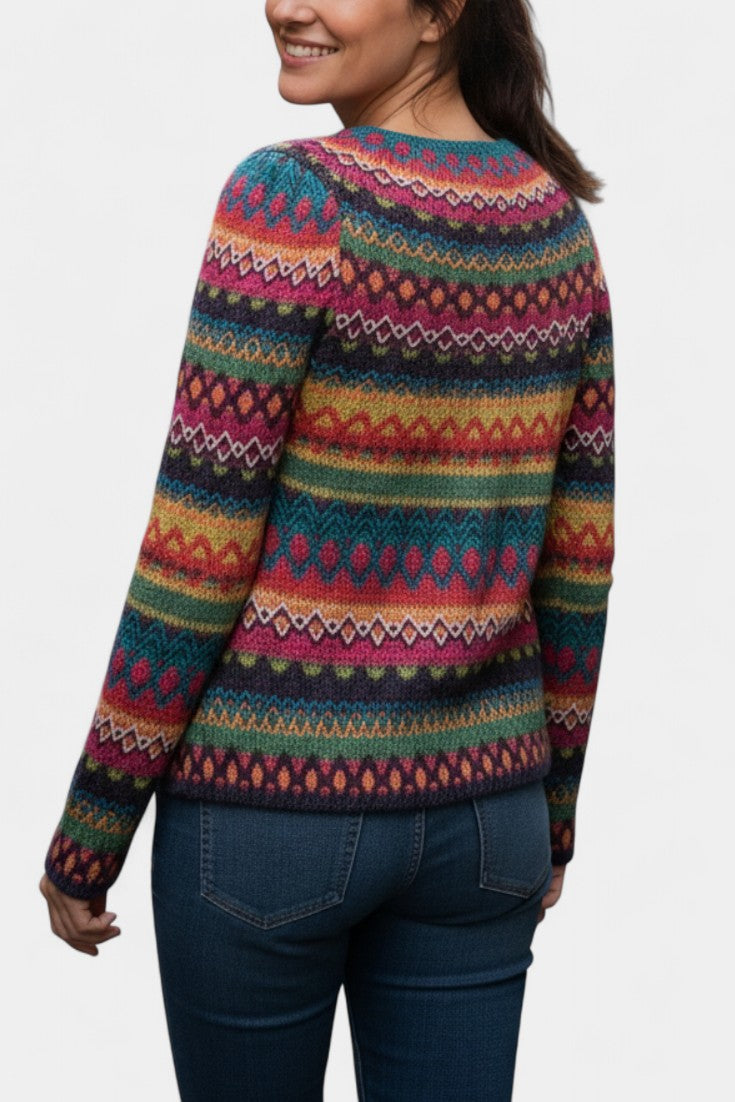Mélya Pull Jacquard Multicolore en Laine Douce