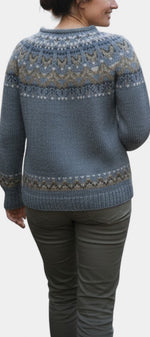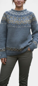 Nolène capture l’esprit intemporel du tricot nordique avec son motif délicat et sa teinte bleu brume apaisante. Sa maille épaisse et moelleuse procure une chaleur enveloppante, parfaite pour les journées fraîches. Ce pull allie confort, élégance naturelle et une touche artisanale irrésistible.