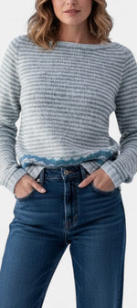 Yliana Pull Rayé en Maille Douce à Col Bateau