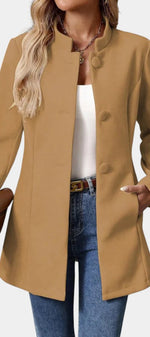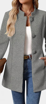 Un manteau à l’élégance sobre et structurée, pensé pour accompagner les journées fraîches avec style. Lyana se distingue par son col montant épuré et sa coupe régulière qui équilibre parfaitement confort et allure soignée. Entièrement doublé, il enveloppe la silhouette avec justesse et offre une tenue nette, idéale pour un vestiaire quotidien raffiné.
