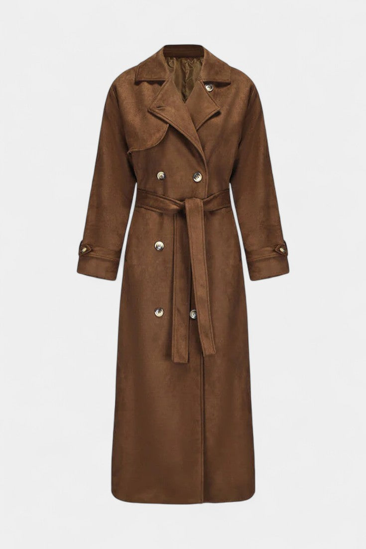 Leelie Trench Maxi en Suède Synthétique à Ceinture Ajustable