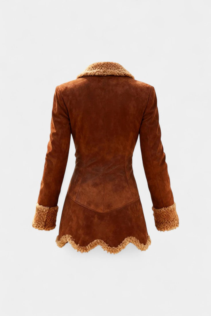 Maïa Veste Droite en Suède Chocolat à Col à Revers