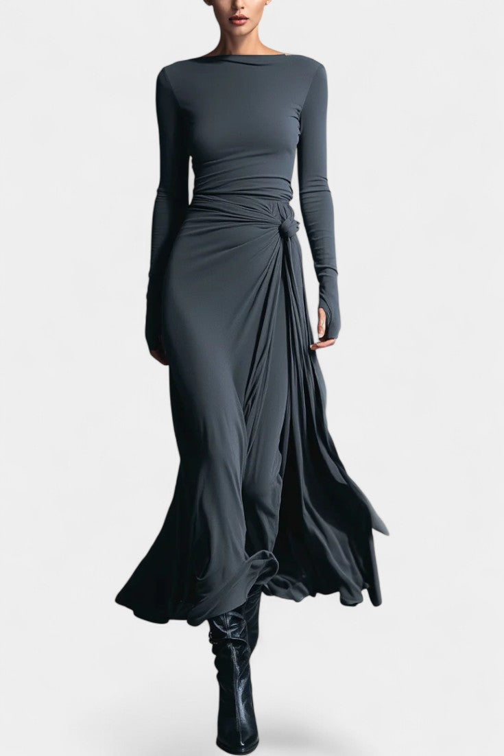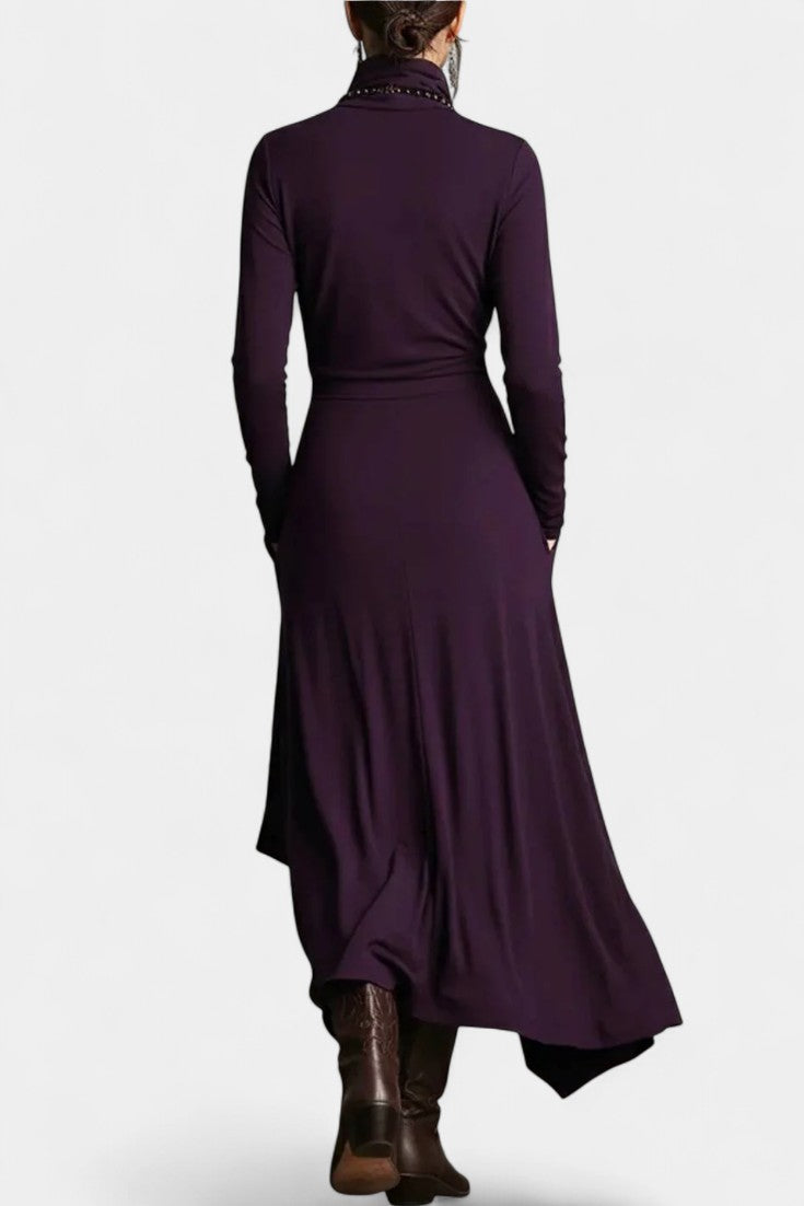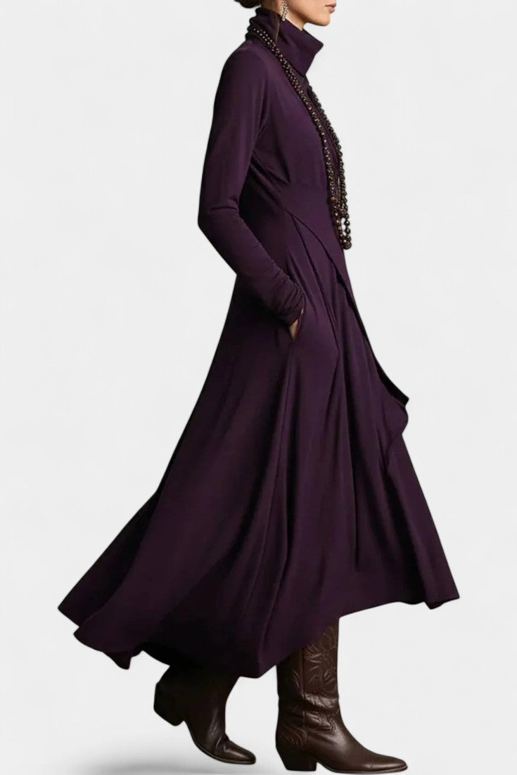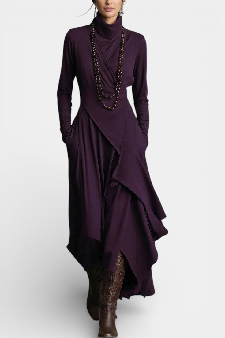 Roselda Robe Maxi à Col Roulé & Fente Élégante