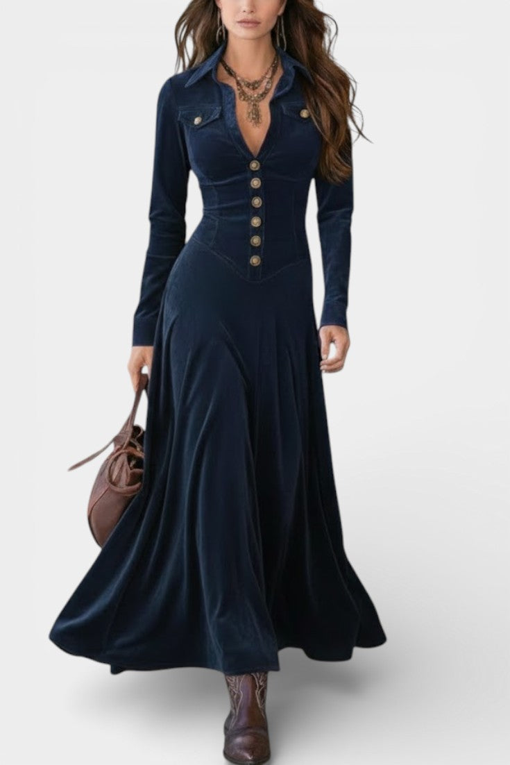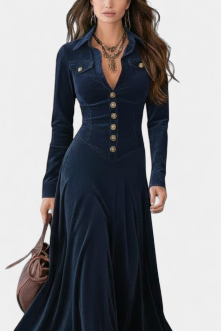 Camélia Robe Longue en Velours Style Blazer Rétro