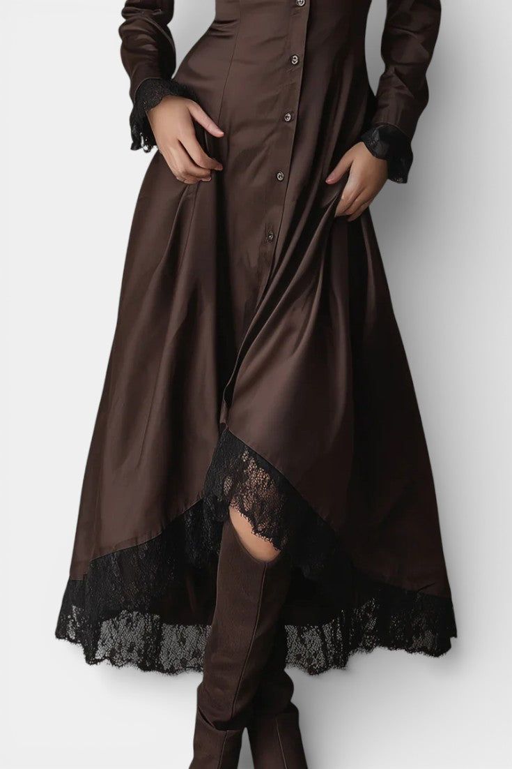 Liesel Robe Midi Évasée Chocolat à Panneaux de Dentelle