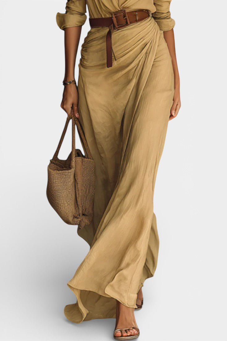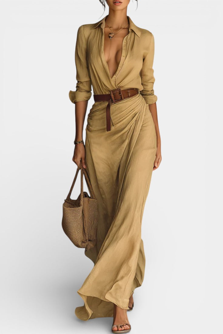 Souline Robe Maxi à Revers et Taille Ceinturée