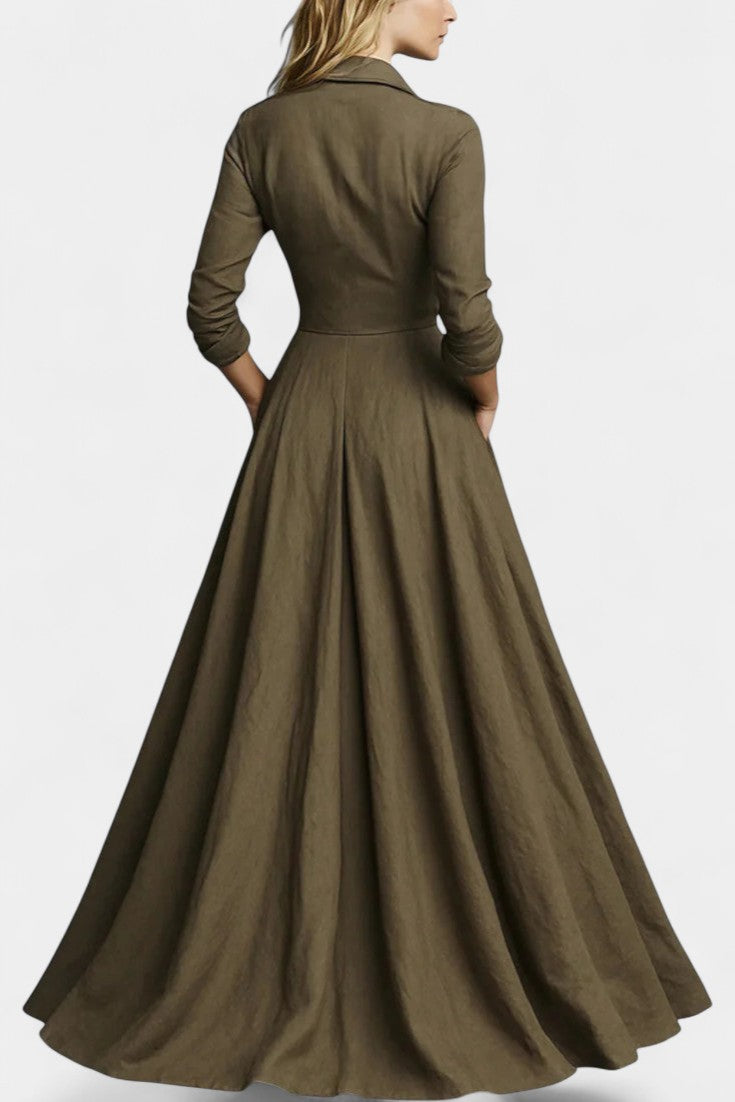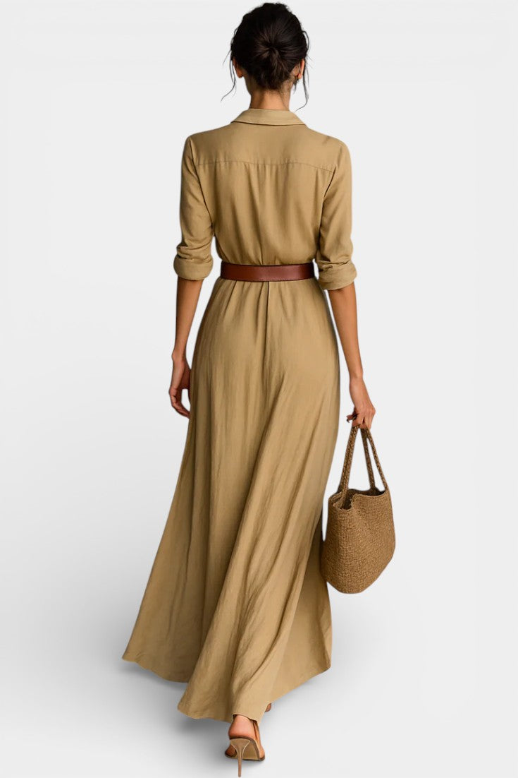 Gabriela Robe Longue Boutonnée à Taille Marquée