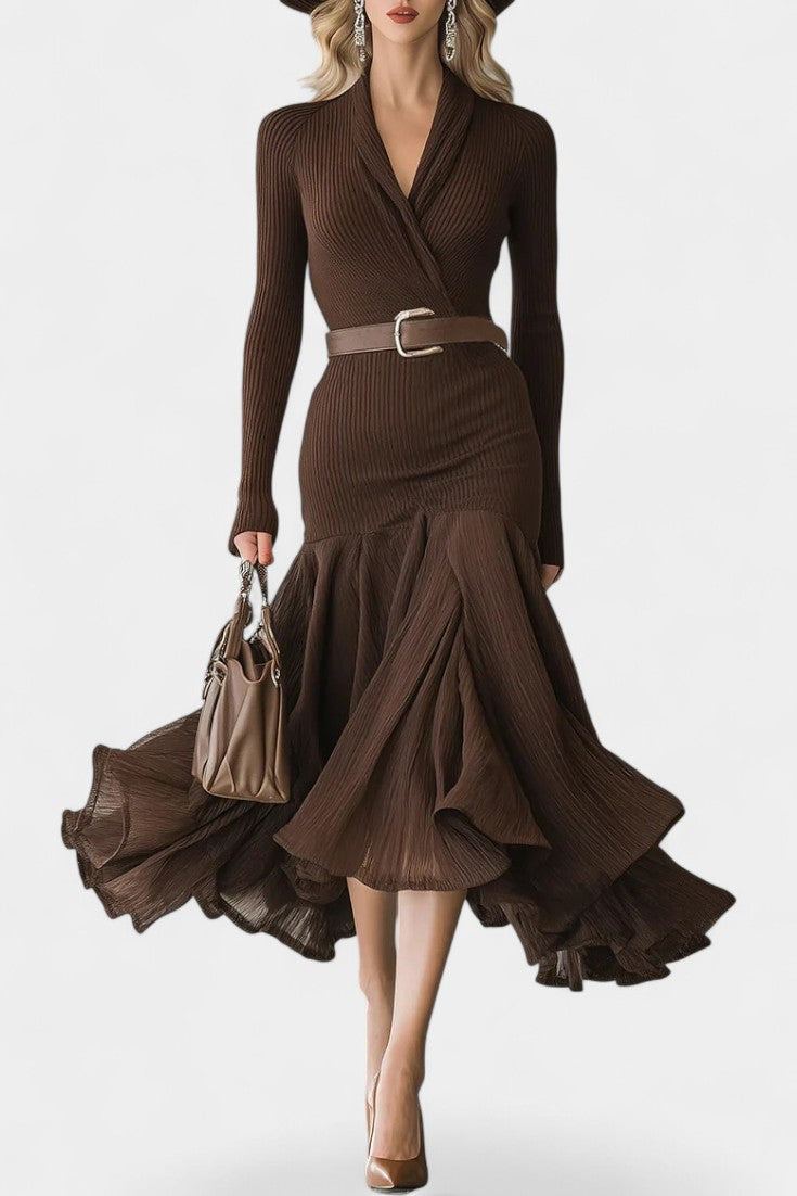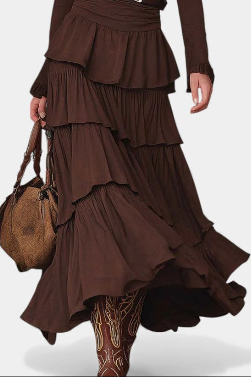 Tilda Robe Longue Marron Rétro à Volants Irréguliers