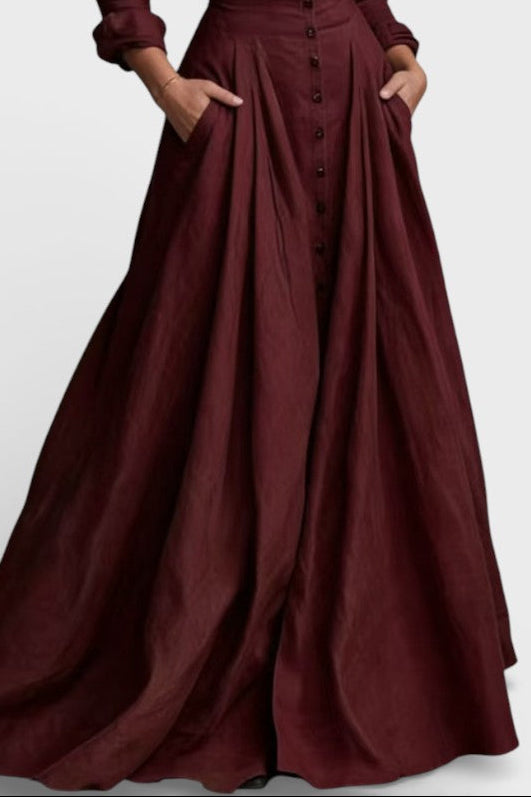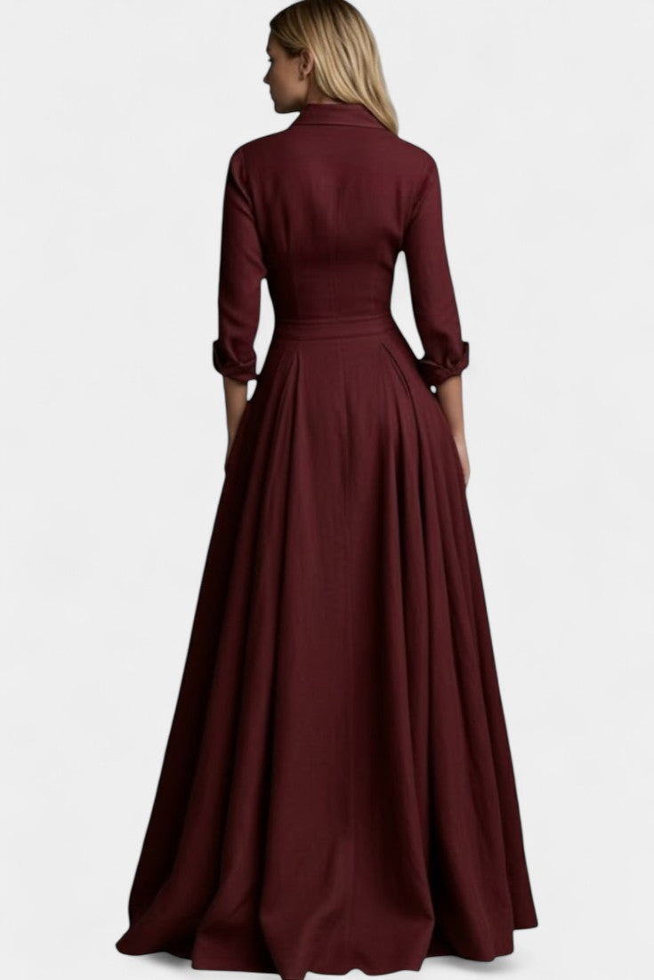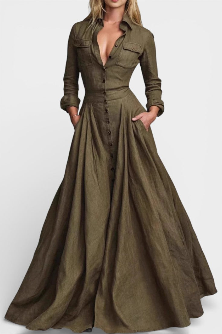 Gabriela Robe Longue Boutonnée à Taille Marquée