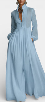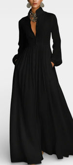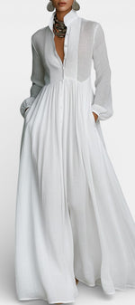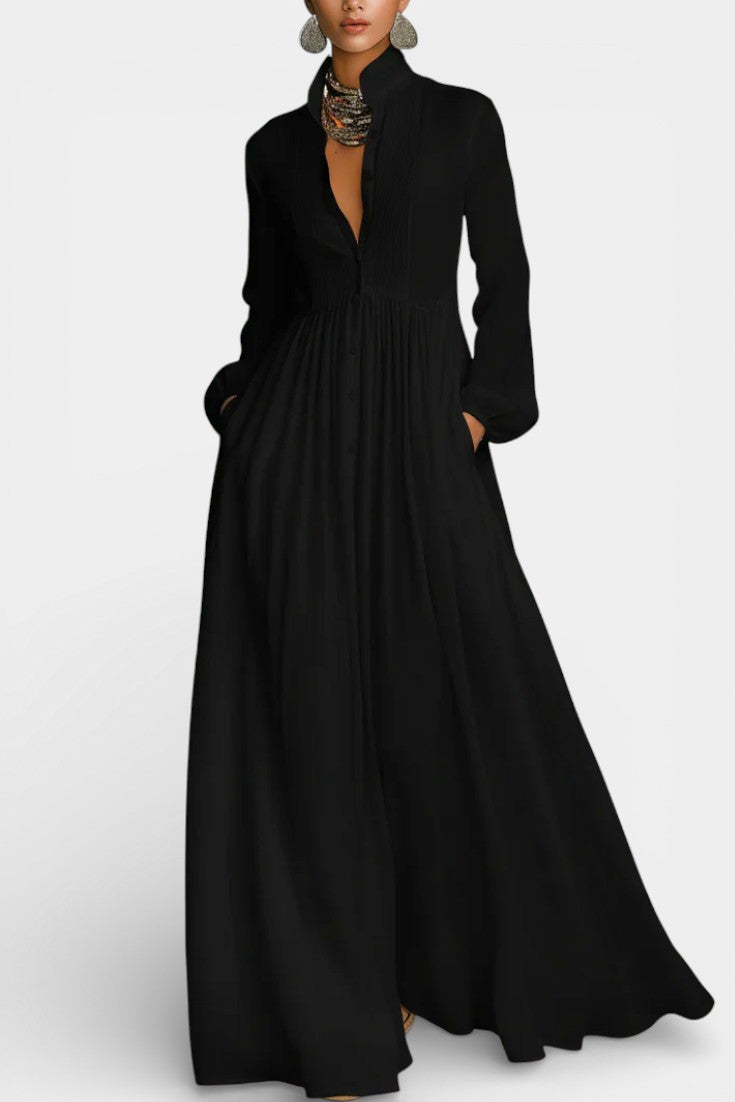 Maravilla Robe Longue en Suédine avec Col Chemise et Dentelle