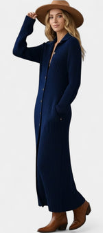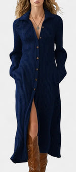 Thea Robe Longue en Maille à Col Chemise
