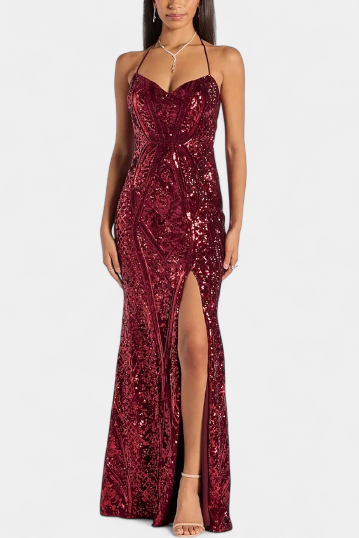 Alina Robe de Soirée Ajustée à Paillettes et Dos Ouvert