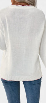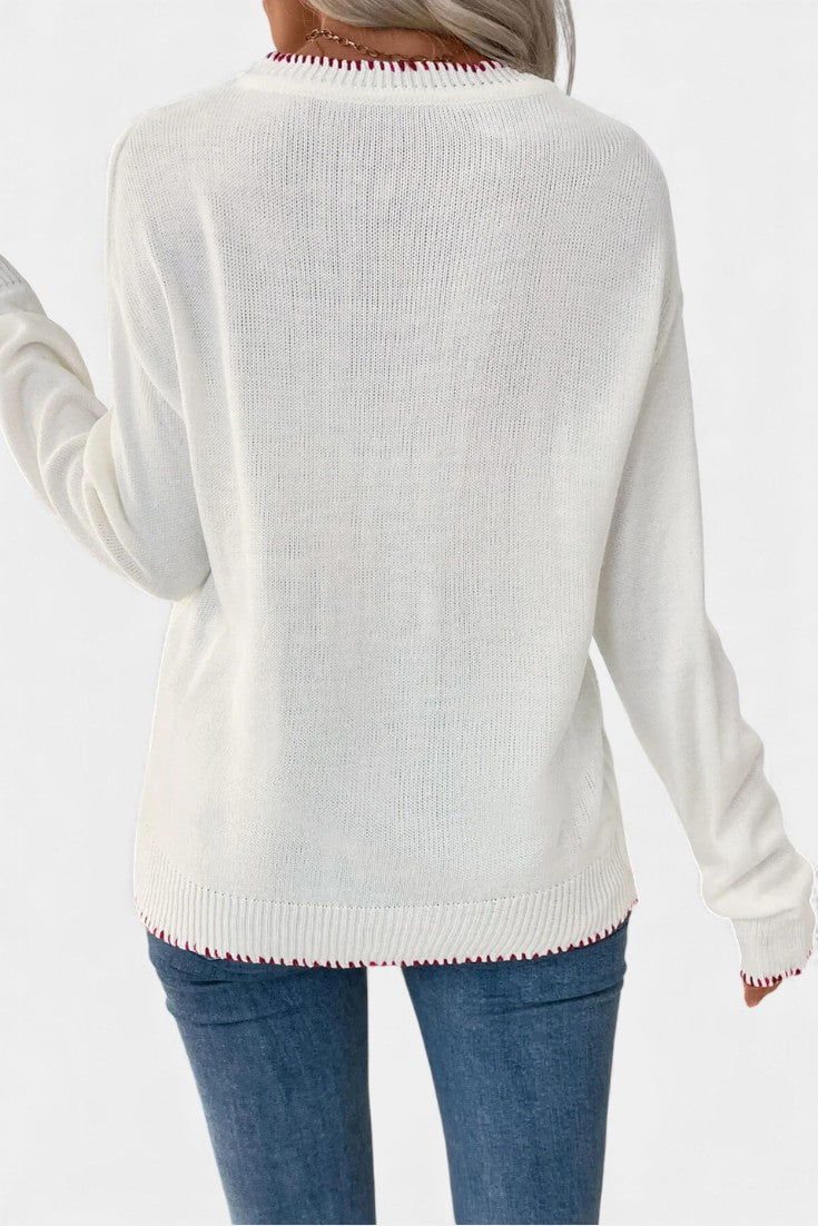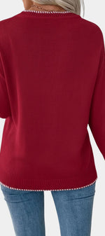 Associez-le à une jupe en velours ou un pantalon large crème pour un contraste chic. Ajoutez des boucles d’oreilles dorées pour souligner l’esprit festif, ou optez pour un jean droit et des bottines pour une élégance décontractée.