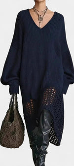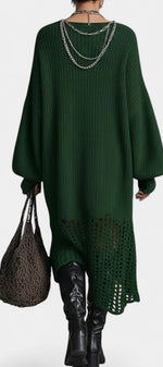 Une robe en maille au caractère affirmé, pensée pour conjuguer confort enveloppant et allure contemporaine. Brigitte séduit par sa coupe ample et fluide, son col en V délicatement dégagé et sa maille texturée qui apporte profondeur et modernité à la silhouette. Les détails ajourés sur le bas de la robe insufflent une touche artisanale et audacieuse, tout en laissant le mouvement s’exprimer avec élégance. Une pièce forte, à la fois décontractée et sophistiquée.