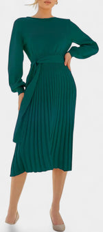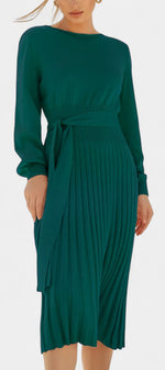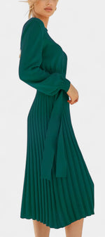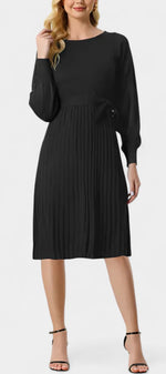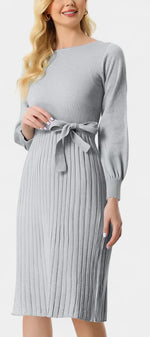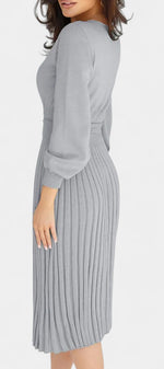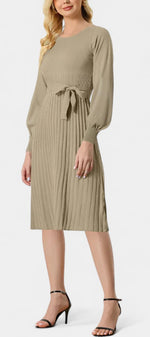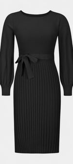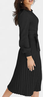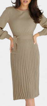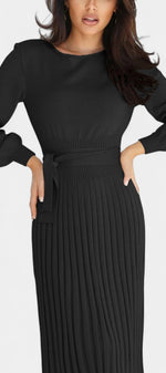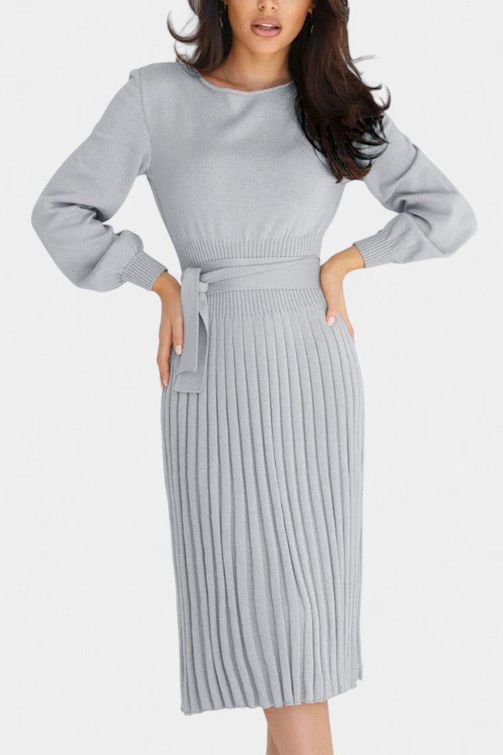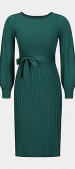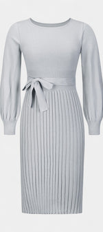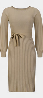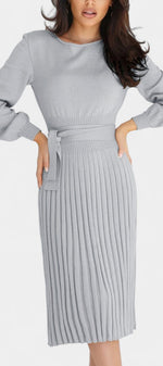 Chloéria Robe Pull Midi Plissée à Ceinture et Maille Côtelée