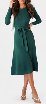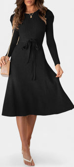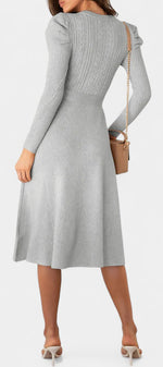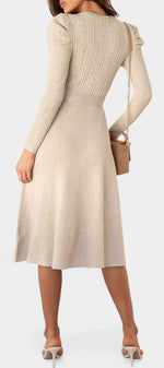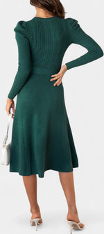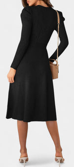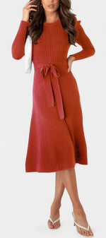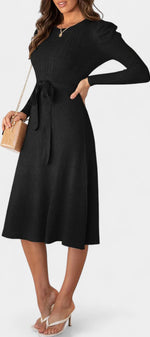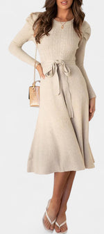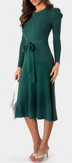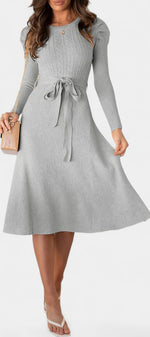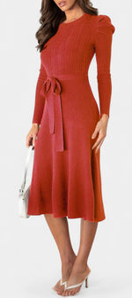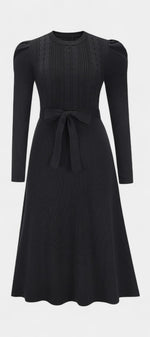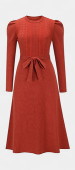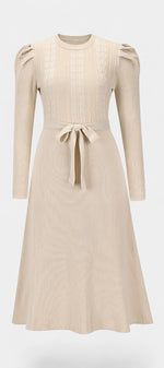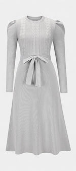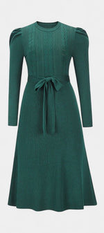 Évoria Robe Pull Midi Tricotée à Manches Bouffantes et Détail Lacé