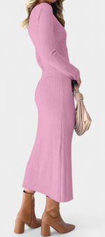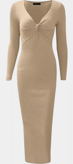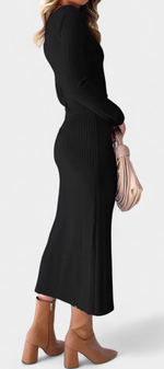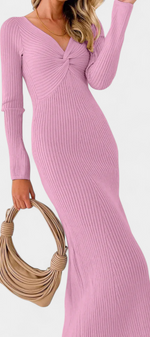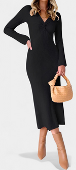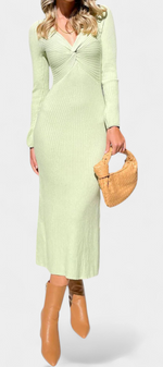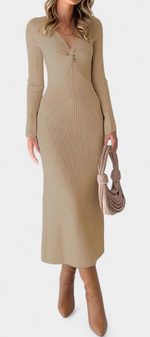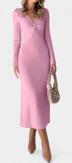 Mélusine Robe Pull Ajustée à Col en V Froncé et Manches Longues