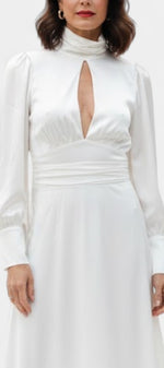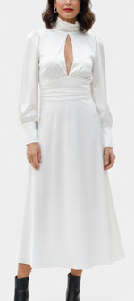 Abundia Robe Longue Satinée à Col Montant et Découpe Délicate