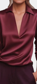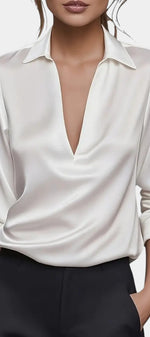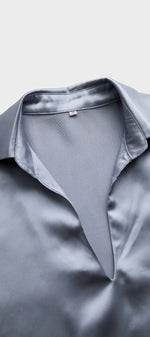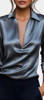 Aline Blouse en Satin Argenté à Décolleté Plongeant