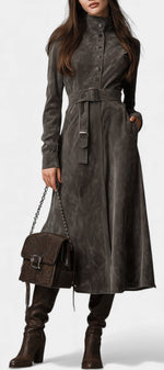 Alliant l’élégance iconique du trench et le caractère affirmé de l’Ouest, Ambria réinvente le manteau long avec une touche rétro sophistiquée. Ses larges revers inspirés du western et ses coutures subtiles apportent du relief, tandis que sa coupe longue et fluide dessine une silhouette élancée. Conçue dans un tissu épais et coupe-vent, elle offre chaleur et structure — parfaite pour les journées fraîches où l’on veut rester chic sans effort.