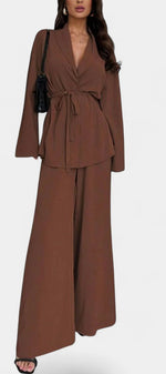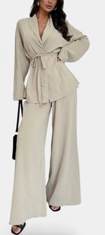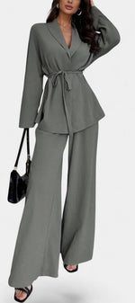 Amy Ensemble Tailleur à Décolleté V et Pantalon Évasé