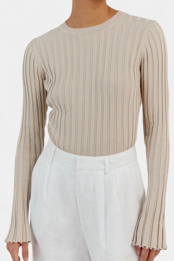 Annalou incarne la féminité moderne avec une coupe ajustée et des détails délicats. Son design épuré est rehaussé de manches bouffantes raffinées et de poignets légèrement volants, créant un équilibre parfait entre élégance et confort. Sa maille côtelée subtile offre texture et tenue, pour une allure chic au quotidien.