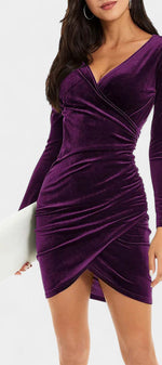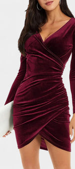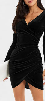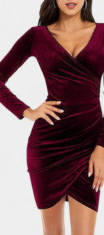 Aude Robe Mini Près du Corps en Velours à Col en V Froncé