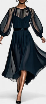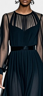 Aurelia incarne la légèreté et la grâce dans une version moderne du romantisme. Confectionnée en chiffon plissé, elle se distingue par son tombé aérien et son mouvement fluide à chaque pas. Sa coupe ample, son col rond raffiné et ses délicats jeux de transparence apportent une touche à la fois féminine et contemporaine, parfaite pour les moments d’exception.