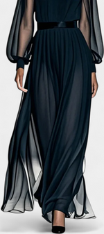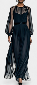 Aurelia Robe Longue en Chiffon Plissé à Détails Transparents