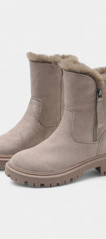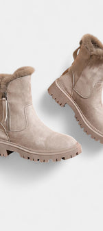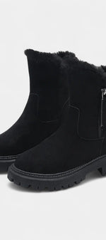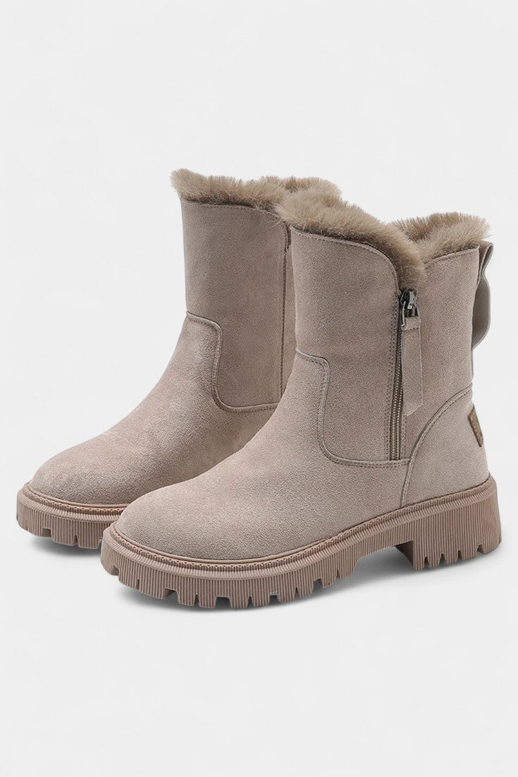 Avril conjugue élégance et performance pour affronter l’hiver avec assurance. Conçues pour offrir une chaleur optimale et un confort durable, ces bottes montantes se distinguent par leur bord en fausse fourrure raffinée et leur semelle à plateforme antidérapante. Leur design orthopédique assure un soutien idéal tout au long de la journée, tandis que la fermeture éclair latérale facilite l’enfilage. Un parfait équilibre entre fonctionnalité et allure chic.