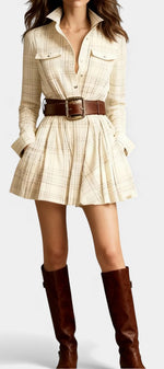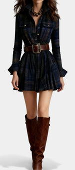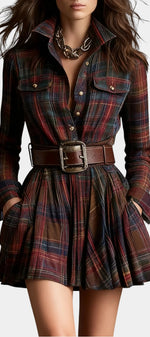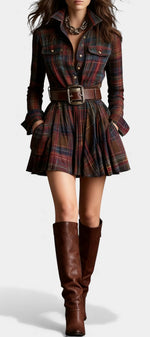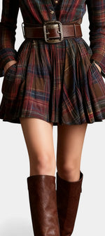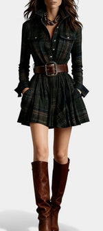 Bogdana Robe Mini Vintage à Carreaux avec Ceinture