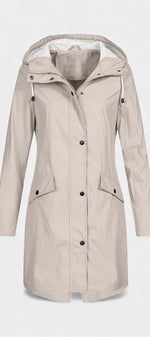 Carmélia Parka Longue Imperméable Beige à Capuche Ajustable