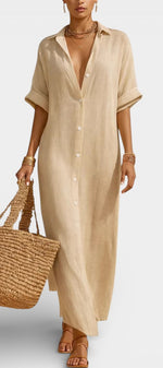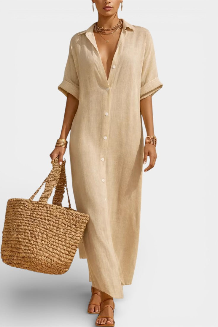 Portez-la avec des sandales plates et un sac en fibres naturelles pour un look solaire, ou ceinturée avec des accessoires dorés pour une silhouette plus structurée et raffinée.