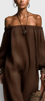 Épurée et architecturale, la combinaison Clarice joue avec les contrastes pour une allure résolument contemporaine. Son design singulier associe un haut à décolleté sans manches à des manches longues structurées, créant une silhouette graphique et affirmée. Confectionnée dans un mélange de lin respirant, elle offre un tombé naturel et un confort élégant, parfait pour celles qui recherchent une pièce forte sans ostentation. Une combinaison pensée pour sublimer la simplicité avec caractère.