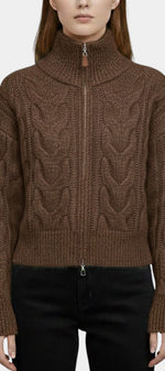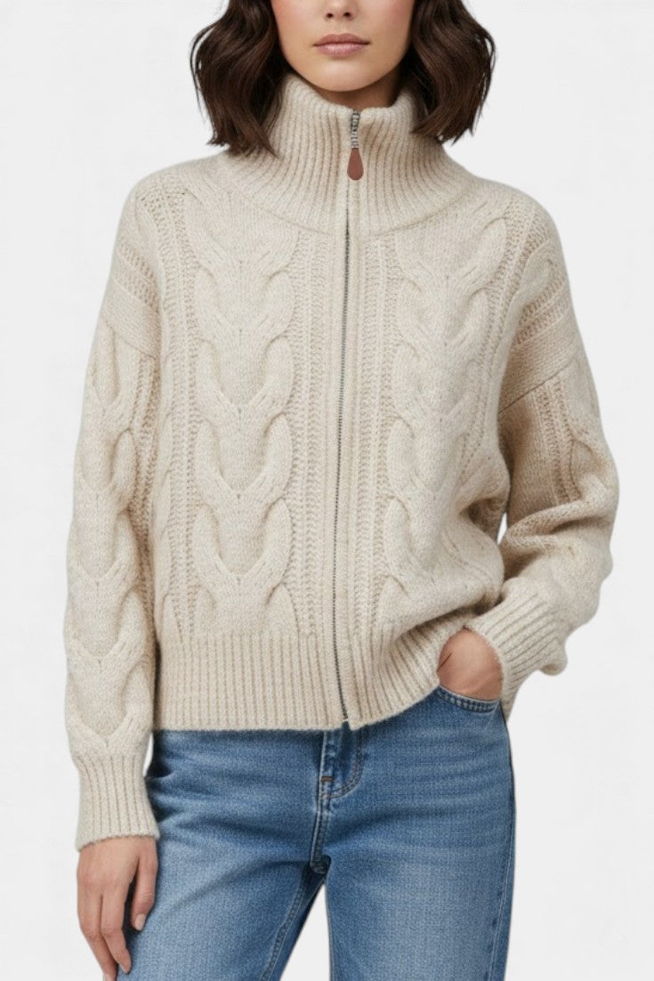 Un gilet qui marie savoir-faire classique et allure contemporaine. Crystal séduit par son tricot torsadé riche en texture et son col haut structuré, offrant une silhouette nette et élégante. Sa fermeture zippée permet d’ajuster le style selon l’envie, tandis que les finitions côtelées apportent une tenue impeccable et flatteuse. Une pièce essentielle pour une élégance quotidienne tout en douceur.