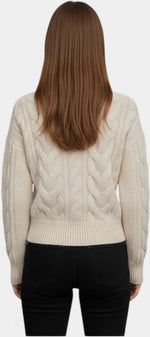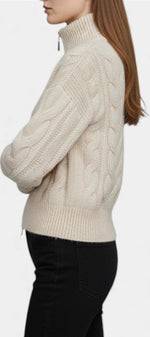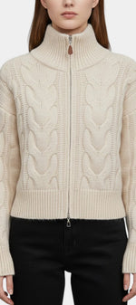 Crystal Gilet Zippé en Tricot Torsadé Blanc à Col Haut