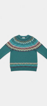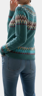 Émira revisite le charme du tricot nordique dans une version féminine et contemporaine. Confectionné dans une maille douce et confortable, ce pull présente un motif jacquard raffiné sur le buste et les manches, ajoutant une touche artisanale et chaleureuse. Sa coupe légèrement ample et son col rond en font une pièce parfaite pour les journées d’hiver tout en gardant une allure élégante et décontractée.