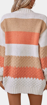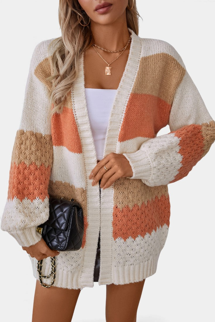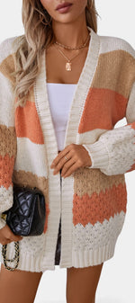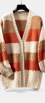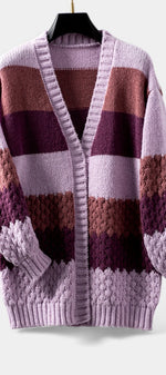 Un cardigan ample et enveloppant qui apporte immédiatement une touche cosy et moderne. Grusha séduit par son ouverture frontale facile à superposer et ses manches travaillées qui ajoutent du relief à la silhouette. Son motif rayé renforce son élégance décontractée et permet de composer une tenue rapide, chaleureuse et harmonieuse.