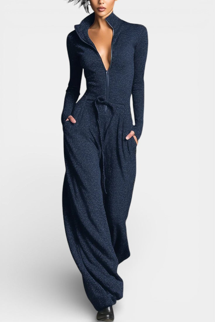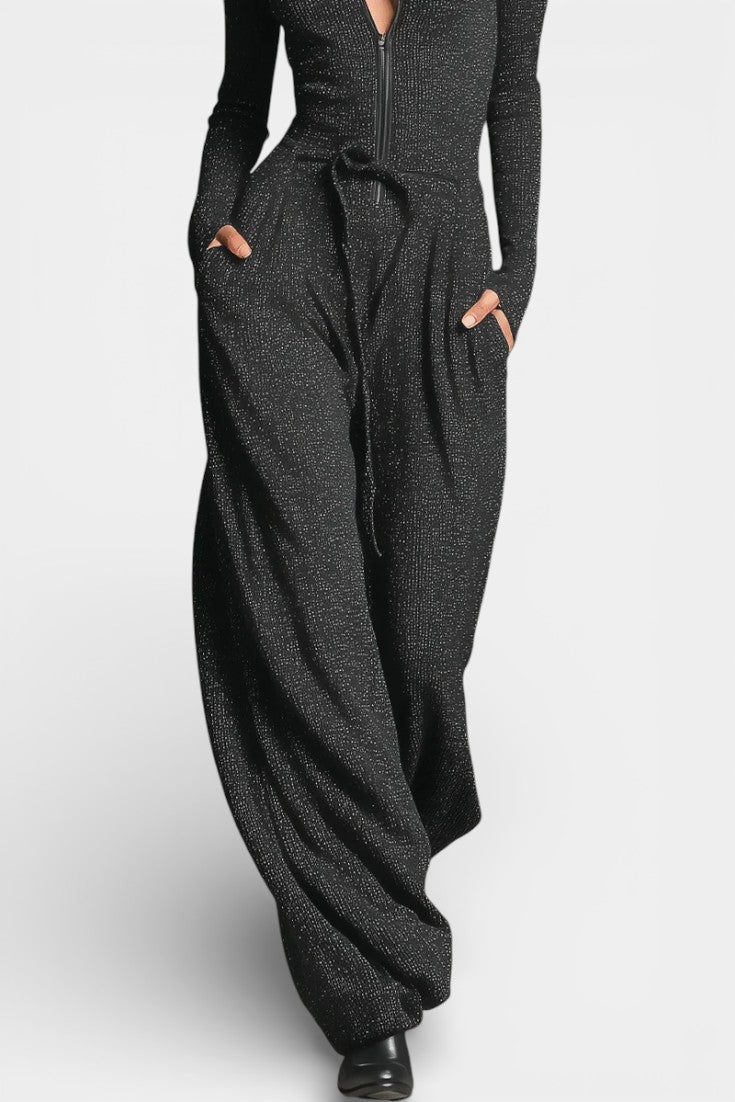 Une pièce contemporaine pensée pour conjuguer élégance et assurance avec modernité. Ilayna séduit par sa coupe fluide à jambes larges, qui allonge la silhouette avec naturel, et par son tricot subtilement brillant qui capte la lumière sans excès. La fermeture éclair frontale structure l’ensemble avec caractère et apporte une touche audacieuse parfaitement maîtrisée. Une combinaison raffinée, idéale pour affirmer un style chic et confiant en toute simplicité.