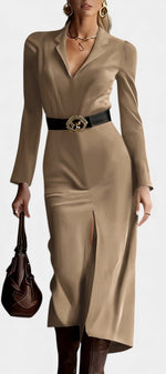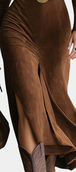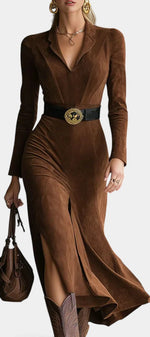 Julia Robe Fendue en Faux Suède Style Western Rétro avec Ceinture