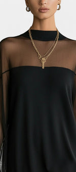 Associez-la à des escarpins minimalistes ou des bottines élégantes. Des bijoux fins et une pochette sobre suffisent à souligner son jeu de transparence avec sophistication.