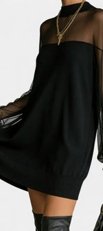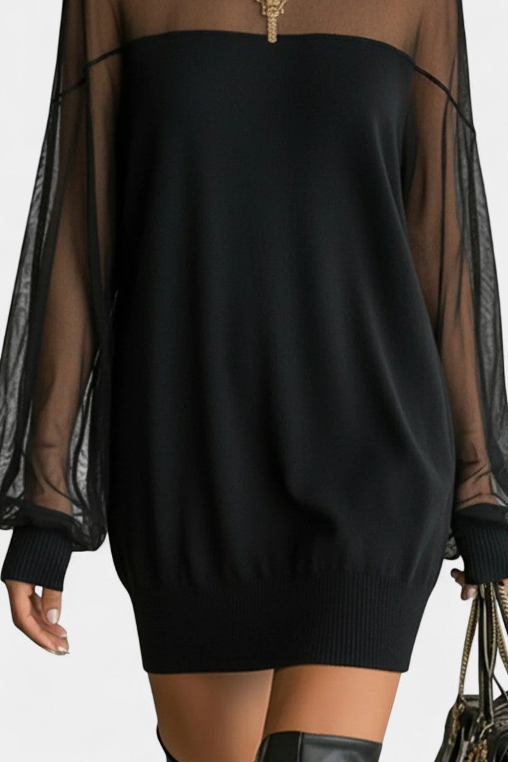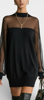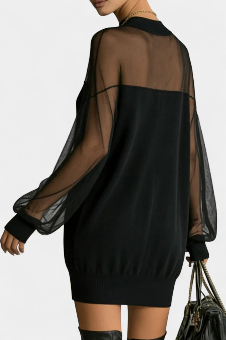 Karsyn Robe Mini à Col Montant et Manches Transparentes
