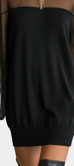 Audacieuse et résolument contemporaine, la robe Karsyn joue sur les contrastes avec subtilité. Son col montant côtelé structure la silhouette tandis que les manches longues en maille transparente apportent légèreté et sensualité maîtrisée. La coupe mini, à la fois souple et légèrement sculptée, épouse le corps sans contrainte, offrant un équilibre parfait entre modernité et raffinement. Une pièce pensée pour affirmer une allure sûre, élégante et actuelle.