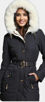 Lanra Parka d’Hiver Ceinturée à Capuche en Fausse Fourrure