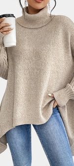Une pièce douce et enveloppante qui apporte immédiatement une allure chaleureuse et raffinée. Lera mise sur un col roulé généreux et une coupe ample qui créent un style cocooning tout en restant élégant et équilibré, parfait pour affronter les journées froides avec aisance.
